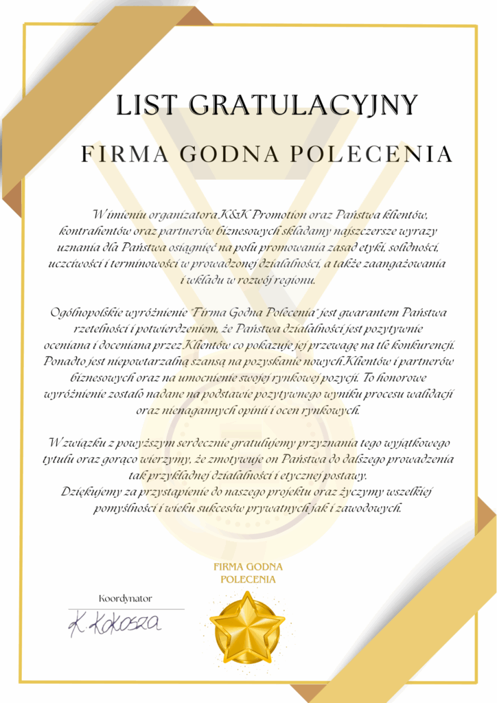 Tu偶 przed 艢wi臋tami, po skrupulatnej weryfikacji danych w sieci internetowej (opinie w Google oraz recenzje na Facebook), otrzymali艣my dzi艣 wyj膮tkowe wyr贸偶nienie!
