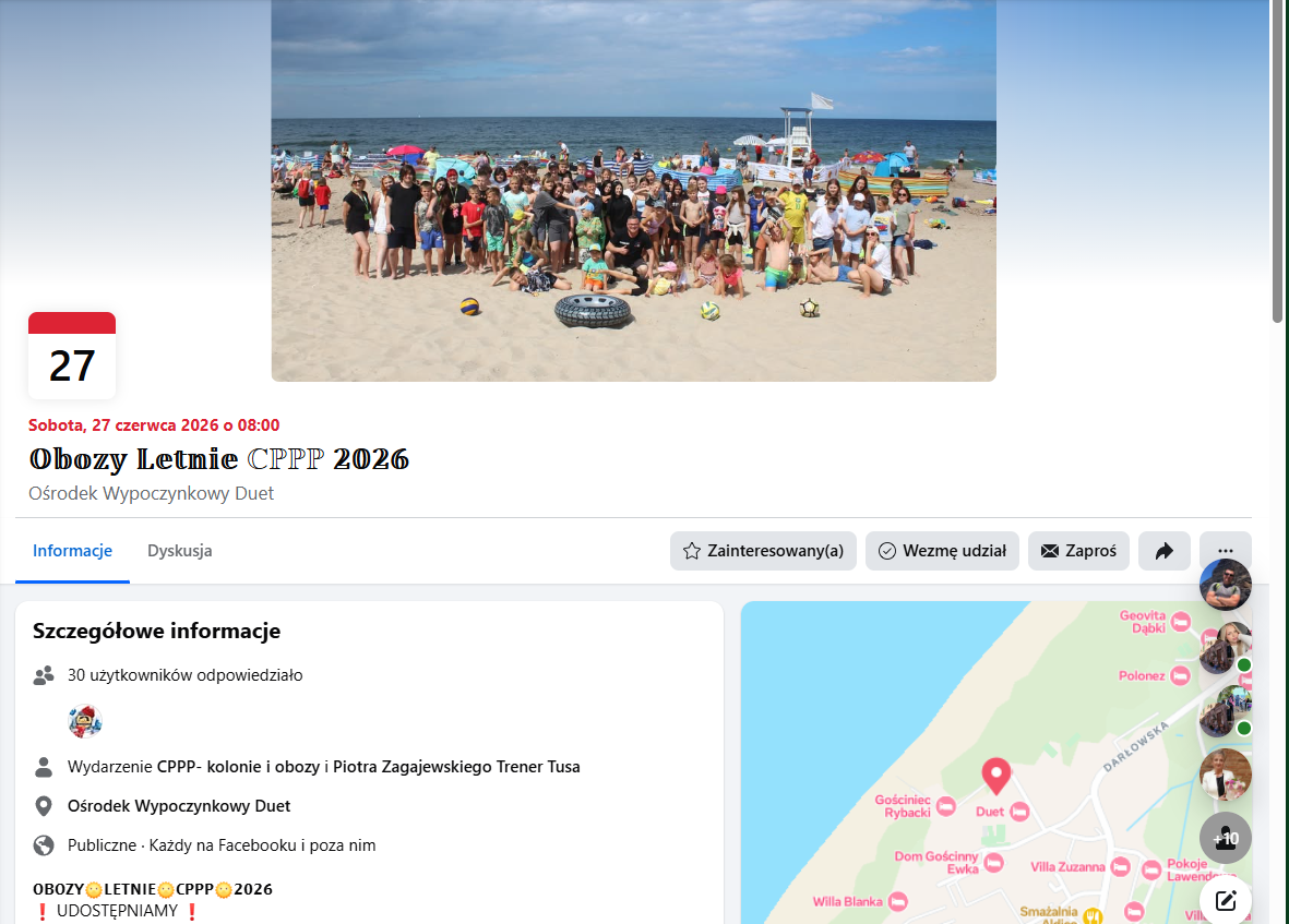 • II Turnus: 🌊 Dąbki – Ośrodek „Duet” 📅 6 VII – 15 VII | 💰 2490 zł + autokar* (ze zniżką)