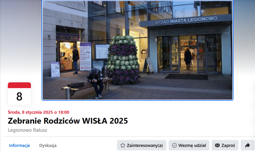 Zapraszamy na Zebranie dot. Obozu Zimowego CPPP w Wiśle, które odbędzie się 8.01.2025 r. (środa) o 18:00 w Sali Widowiskowej Urzędu Miasta Legionowo przy ul. Piłsudskiego 41 (I piętro). Dokumenty będą przyjmowane już od 17:30.